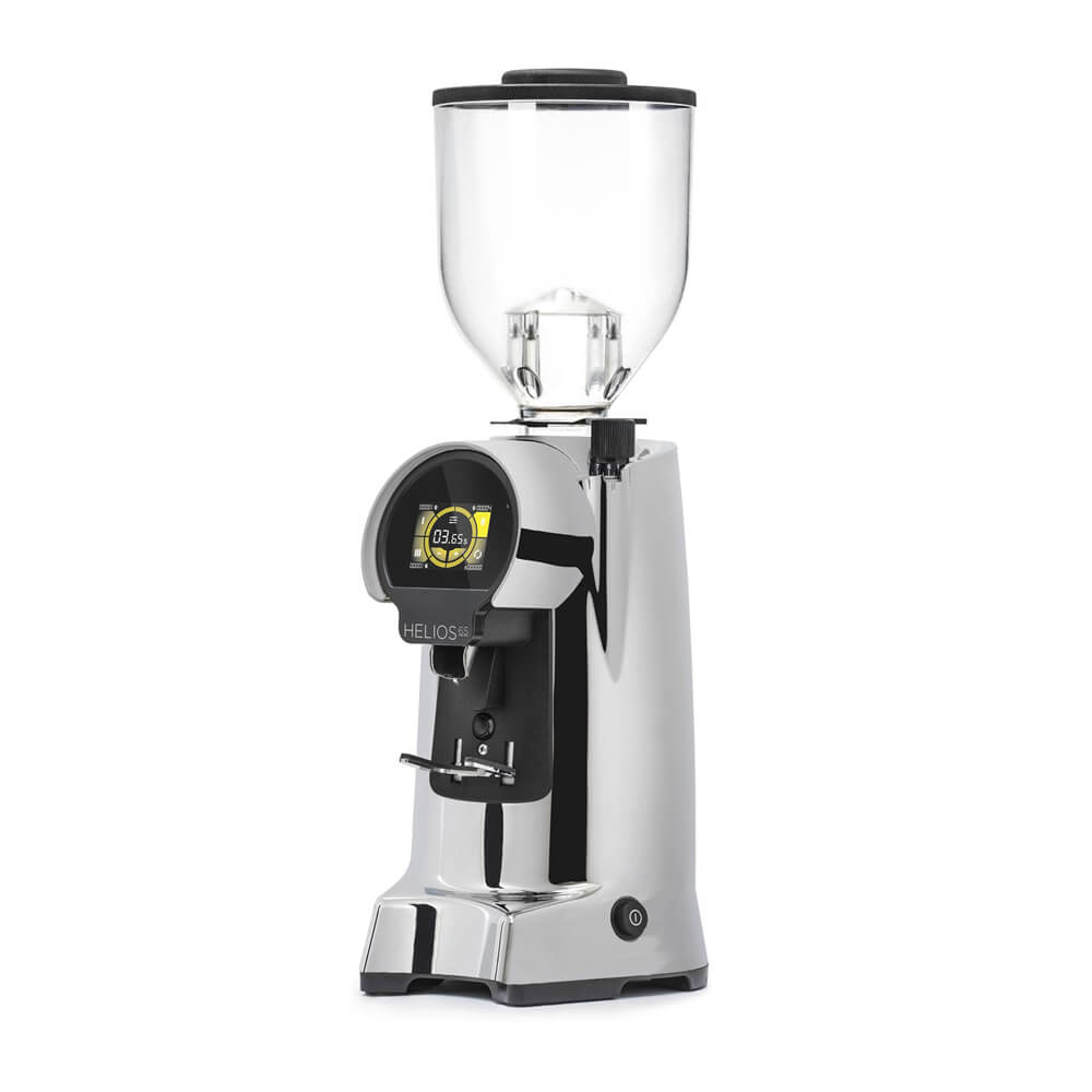 Schon auf den ersten Blick unterscheidet sich die Eureka Helios von den meisten anderen Geräten dieser Art. Die Highperformance On-Demand Profimühle überzeugt durch eine durchdachte Bauweise mit kompakten Abmessungen und einem festen Stand. Sie ist die neue Hochleistungs-Mühle von Eureka. Mit seinem 65 mm Stahl Scheibenmahlwerk, welches bisher nur aus der Atom Specialty Profi Serie bekannt ist, vermahlt sie pro Sekunde beeindruckende bis zu 4,5 g Mahlgut. Die Gastro Kaffeemühle verfügt über das komfortable Touch-Display mit zwei programmierbaren Portioniereinstellungen und ist auch in geräuschreduzierter Silent Bauweise konstruiert.